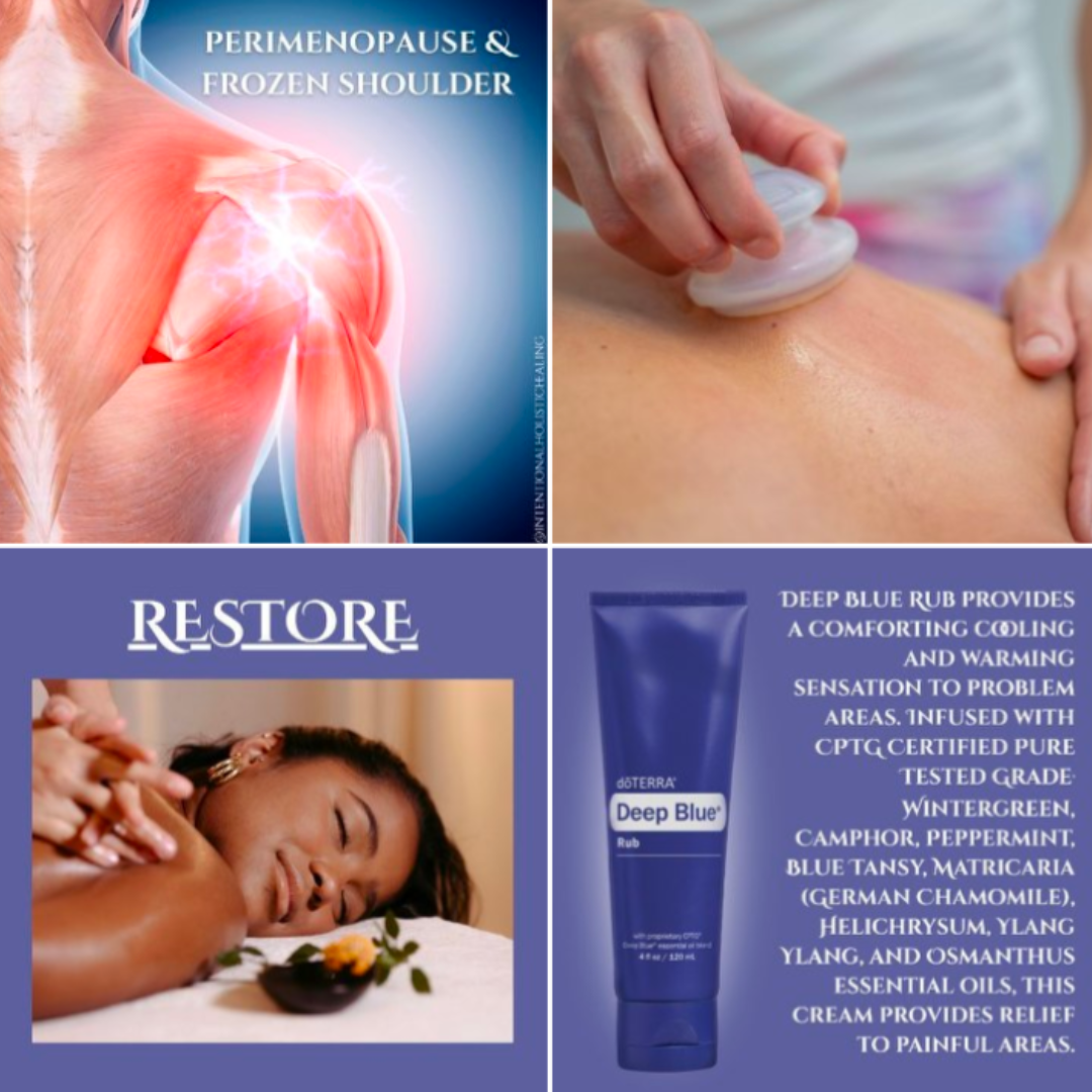When I began experiencing debilitating shoulder pain & noticing many clients were also complaining of the same issues, I learned that upon entering perimenopause, hormone fluctuations impact the structural integrity of our muscles & joints. With less sleep & increased inflammation, this often leads to frozen shoulder. I personally use cupping therapy to address pain & maintain mobility, so I created RESTORE to help restore Your Sanity & Flexibility during these Massive life changes!